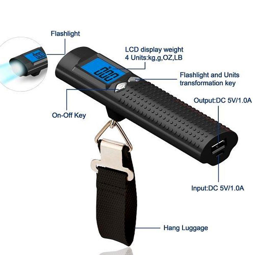 3 מוצרים ב-1: משקל למזוודות + מטען 2600MAH + פנס
