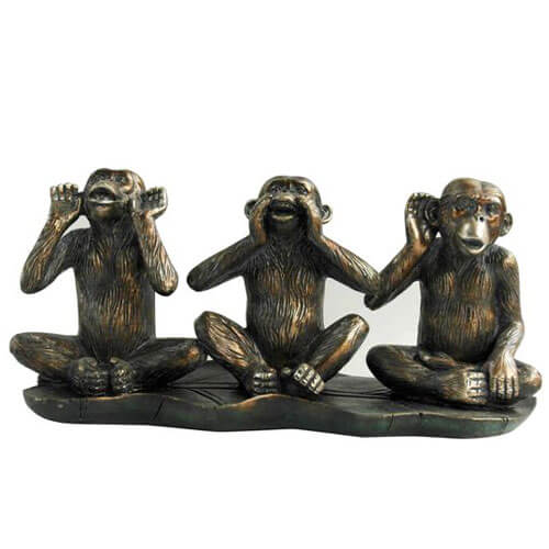 עם הבעות של: לא שומע לא מדבר לא רואה.